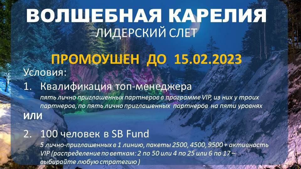 Промо от компании до 15.02.2023 включительно. Лидерский Саммит в Карелии, конец февраля.